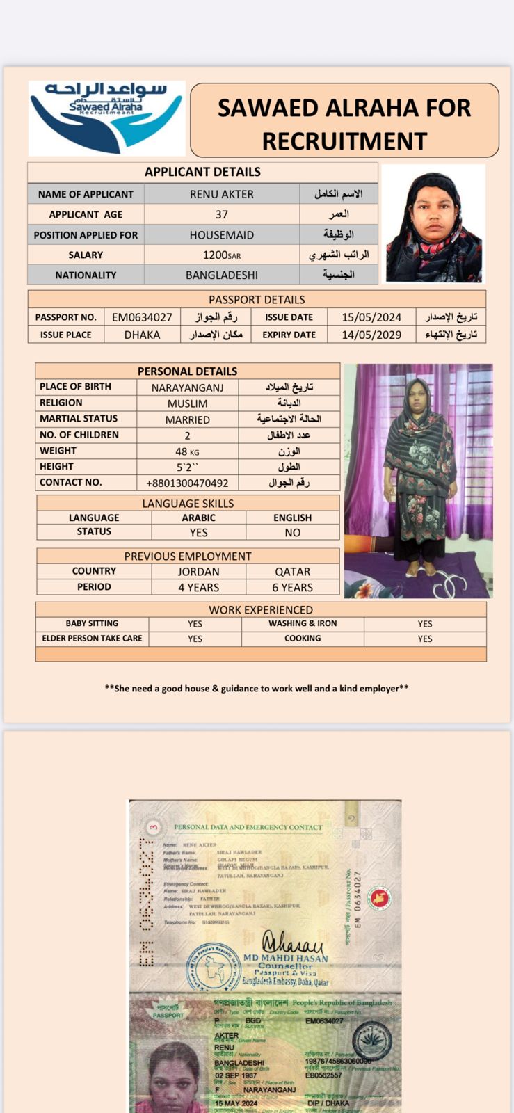 RENU AKTERSulthan2014113 ديسمبر، 2025RENU AKTER الديانة مسلم الخبرة العمليةلديه خبرة سابقة الجنسيةبنجلادش العمر37 اطلب الخدمة الان اطلب الخدمة الان ... اقرأ أكثر