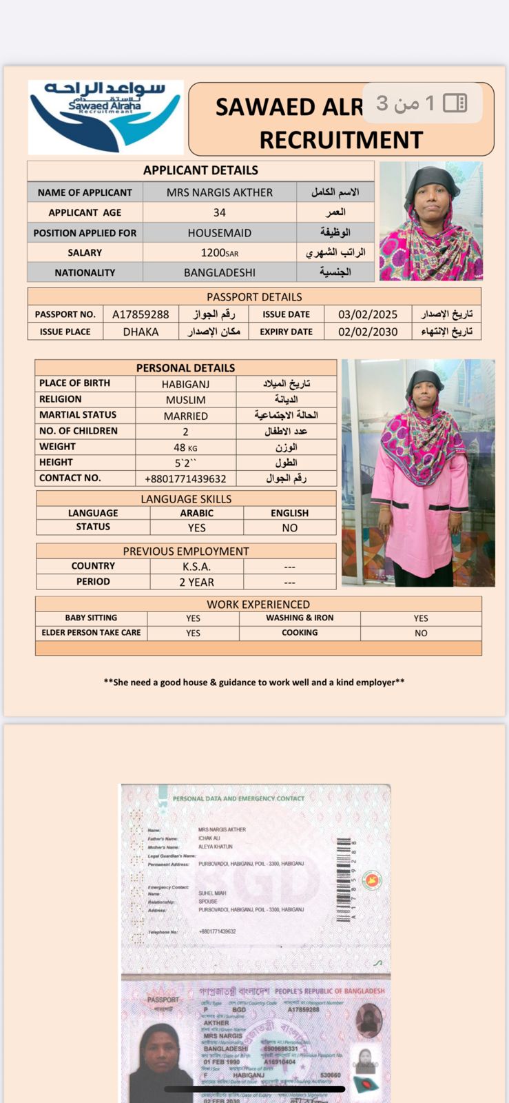 MRS NARGIS AKTHERSulthan2014113 ديسمبر، 2025MRS NARGIS AKTHER الديانة مسلم الخبرة العمليةلديه خبرة سابقة الجنسيةبنجلادش العمر34 اطلب الخدمة الان اطلب الخدمة الان ... اقرأ أكثر